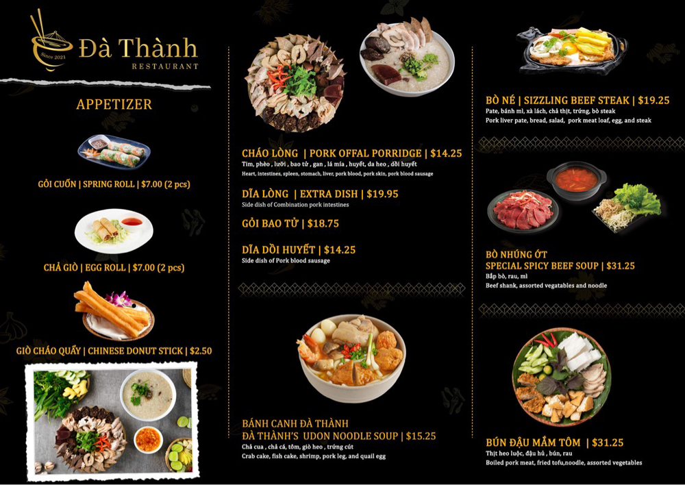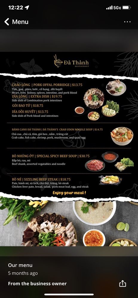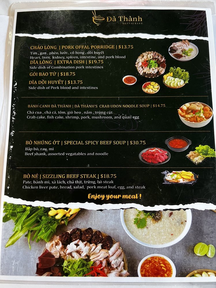 Đà Thành Restaurant in San Jose, California offers a cozy and authentic Vietnamese dining experience. With a trendy ambiance and ample parking, it is perfect for groups looking to enjoy traditional Vietnamese cuisine. Customers rave about the flavorful dishes, such as the Bo Ne sizzling plate of beef, egg, and pork pate. The menu may be limited, but the focus on quality shines through in every dish. The bun long noodle soup with pork intestine and pork blood is a must-try, with generous portions and a variety of toppings. The attentive service and welcoming atmosphere make diners feel right at home, making Đà Thành a standout Vietnamese restaurant in the area.